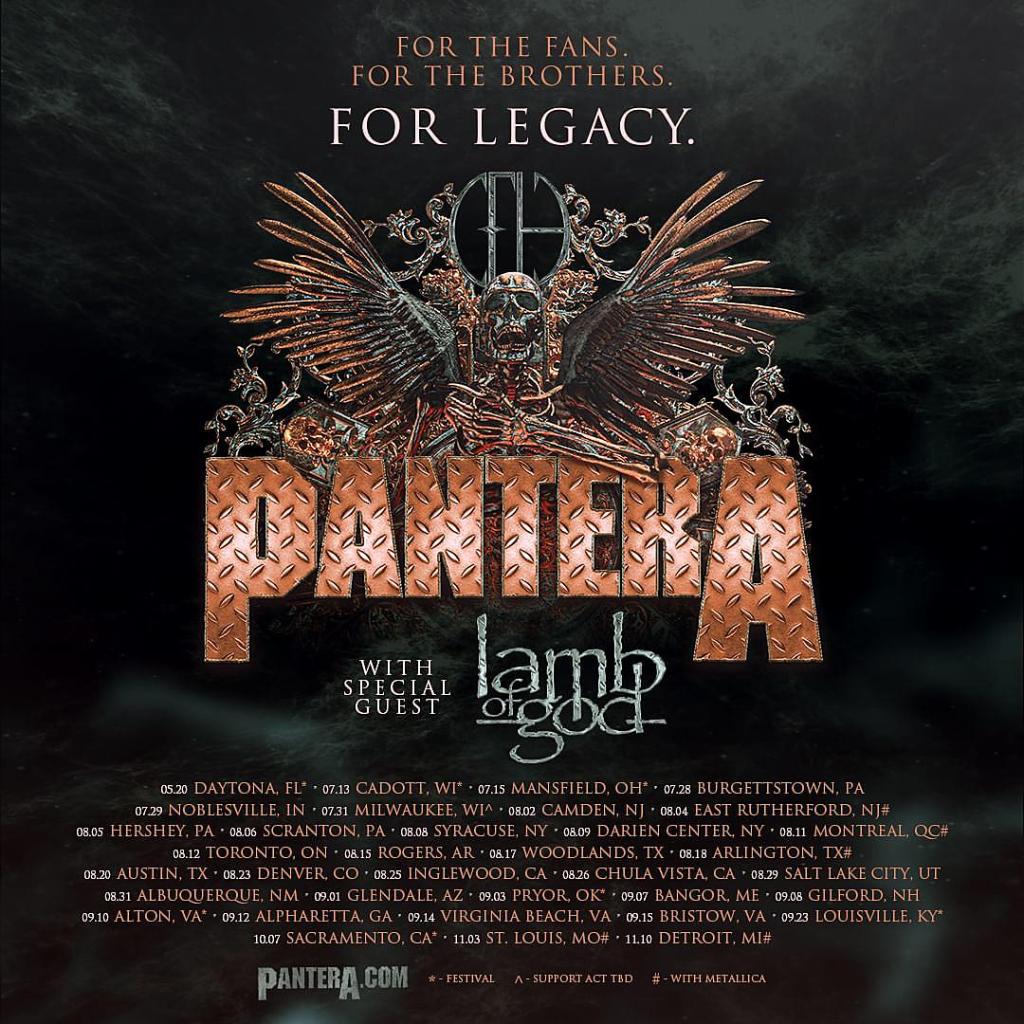 In addition to the headlining tour, the band will be playing multiple major rock festivals as well such as Welcome to Rockville, Inkcarceration, Rocklahoma, Louder Than Life, Aftershock and more. Fans also have the chance to catch Pantera on Metallica’s North American leg of the M72 World Tour, with Pantera as support on specific dates. The headlining tour with Lamb of God is scheduled around the select Metallica dates.